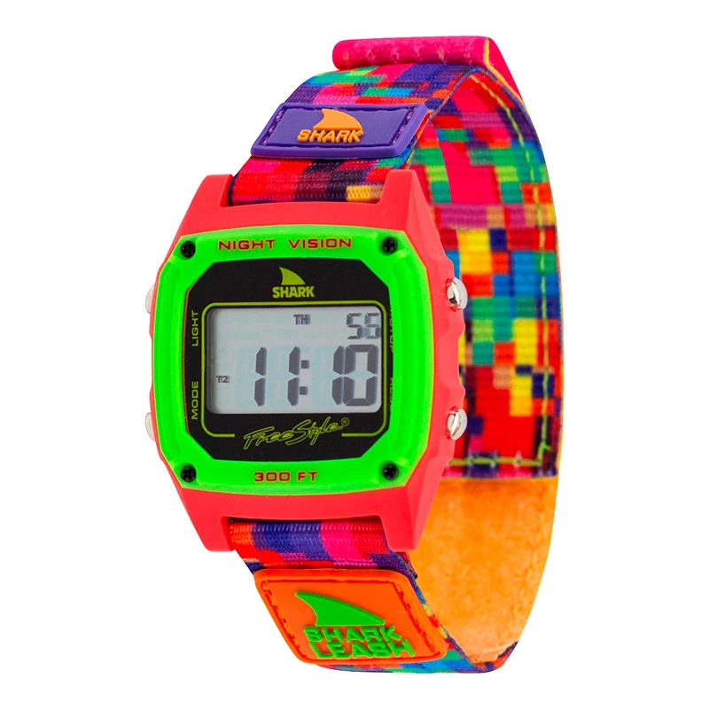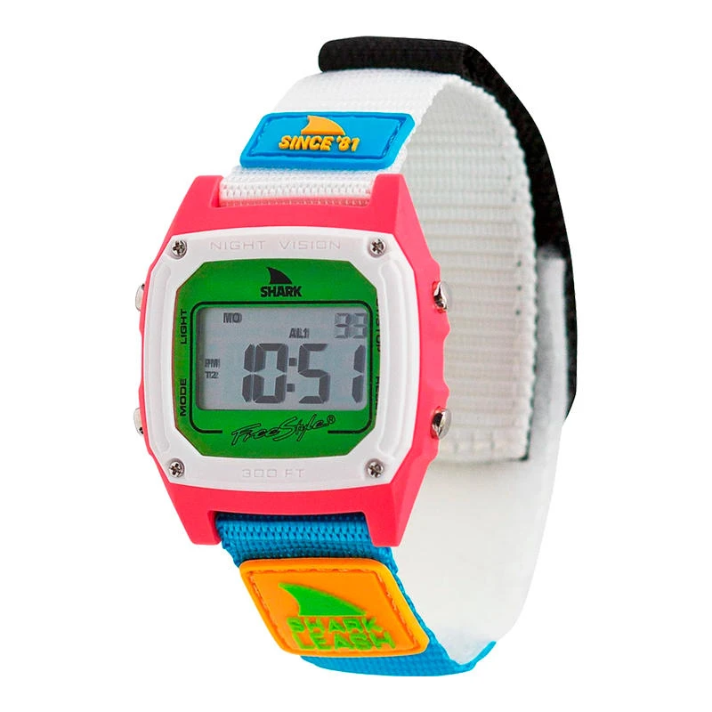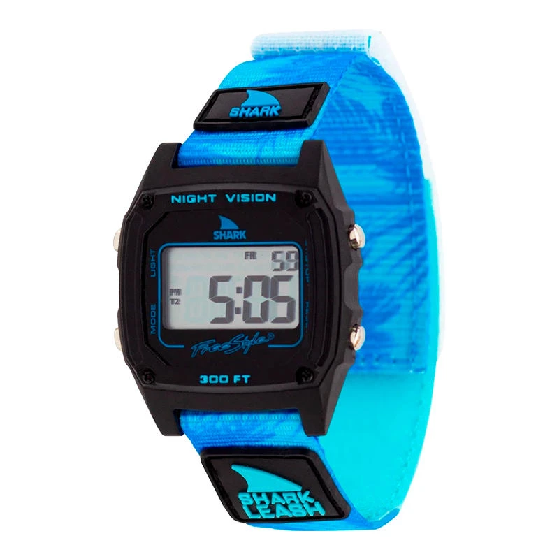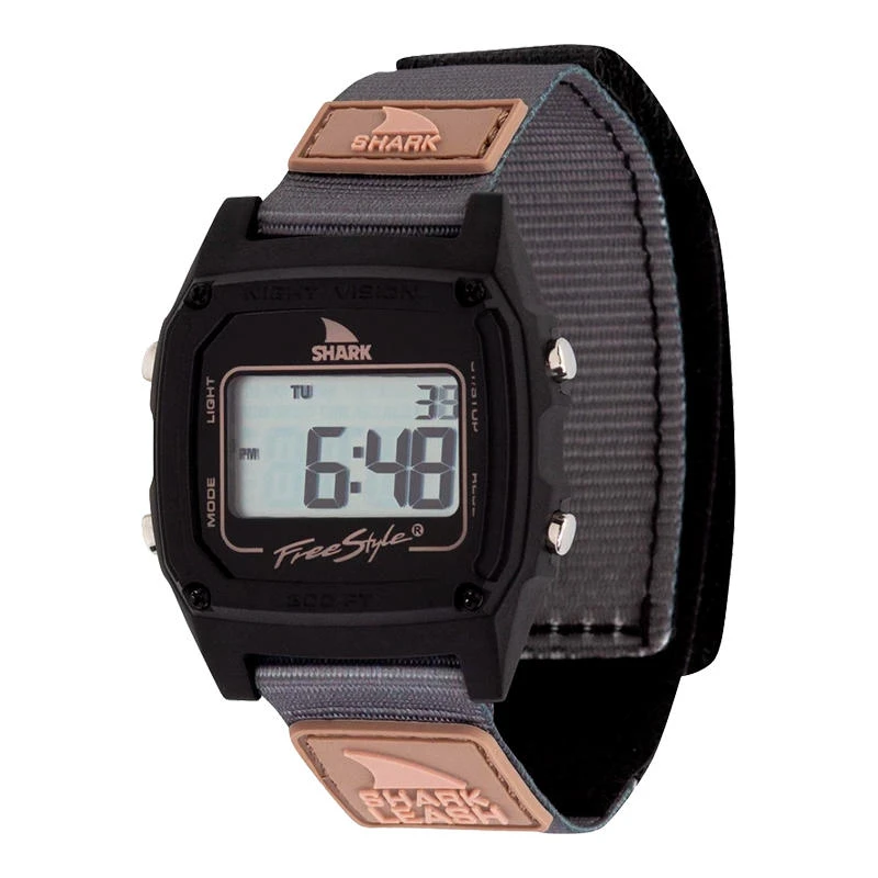 The Shark Classic Leash from Freestyle features an alarm, dual time functionality, and stopwatch. A 38 mm case and hook and loop closure band complete the design. Depth rated for 330ft/100m. Because it’s a Freestyle, it has a mineral gloss lens to prevent scratches and a limited lifetime manufacturers warranty.