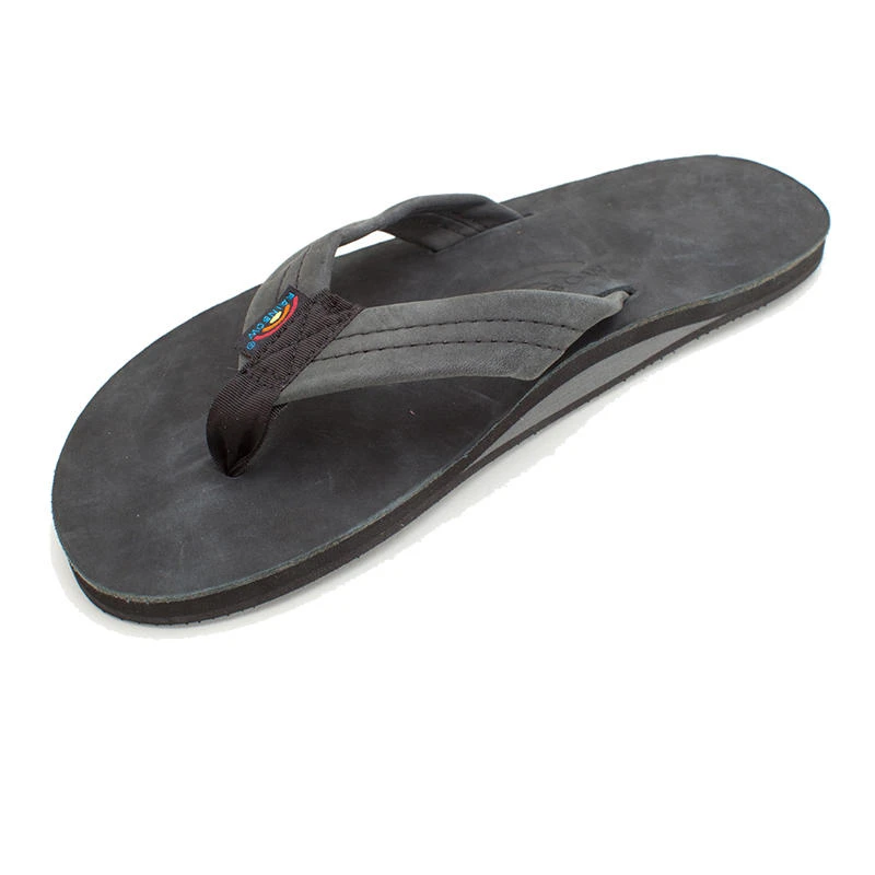 Poolside to bar-side, the Rainbow Men’s Single Layer Wide Strap Sandals will work for you wherever you go this summer! Comfortable and durable, the wide strap sandals are a must have this summer. The strap, also nubuck leather; is double stitched, and the nylon toe piece is secured with a box X stitch, all using bonded nylon thread. The single layer midsole and arch support is triple glued for maximum durability to their non-slip Rainbow bottom. They finish it off with the Original Rainbow woven label on the right strap, the mark of a genuine Rainbow Sandal.