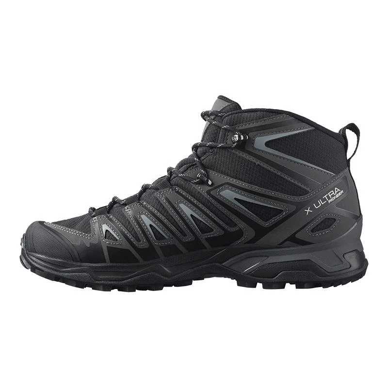 Inspired by the best-selling X Ultra Family, this mid-cut Salomon Men’s X Ultra Pioneer Mid CLIMASALOMON Waterproof Hiking Boots are the go-to option for outdoor enthusiasts. Packed with all the technology you need including waterproof protection, it’s a super-supportive boot that can take on anything. Yet is versatile enough to adapt to your daily life. Don’t settle, get the ultimate trail performance in a lightweight package and get outdoors in any conditions. Two types of rubber and a patterned heel area grab the ground, giving you more control in muddy conditions. While the waterproof membrane keeps the wet out. A reinforced SensiFit construction holds your foot comfortably in place, especially on those tough downhills. Surrounded by foam cushioning for comfort, the Advanced Chassis connects directly to the sole to stabilize your heel. The higher cut wraps the ankle for extra protection.